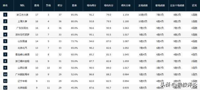 CBA最新排名:广厦捍卫领头羊 两大黑马战绩狂飙 四川20连败惹争议